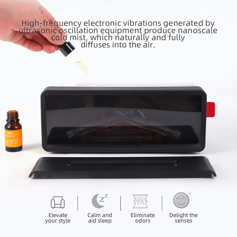 Instruction:simulated flame and fireplace colorful gradient stove light 3 speed timing intelligent anti-dry burn 7 color gradient flame 200ml water tank